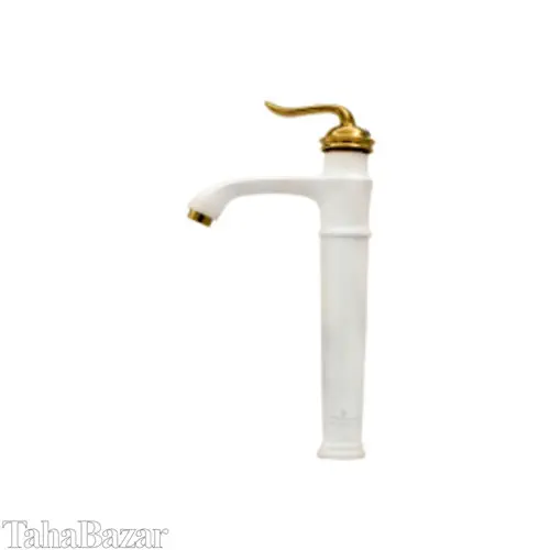 شیر روشویی بلند تهران برنز مدل بامبو سفید طلایی