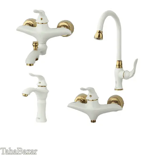 ست شیرآلات اهرمی راسان مدل پریمو سفید طلایی