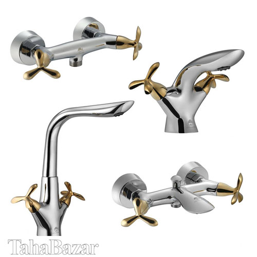 ست شیرآلات درخشان مدل آنتیک کروم طلایی