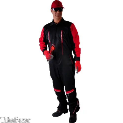 لباس کار کارگری خادم مدل برنا مشکی - قرمز
